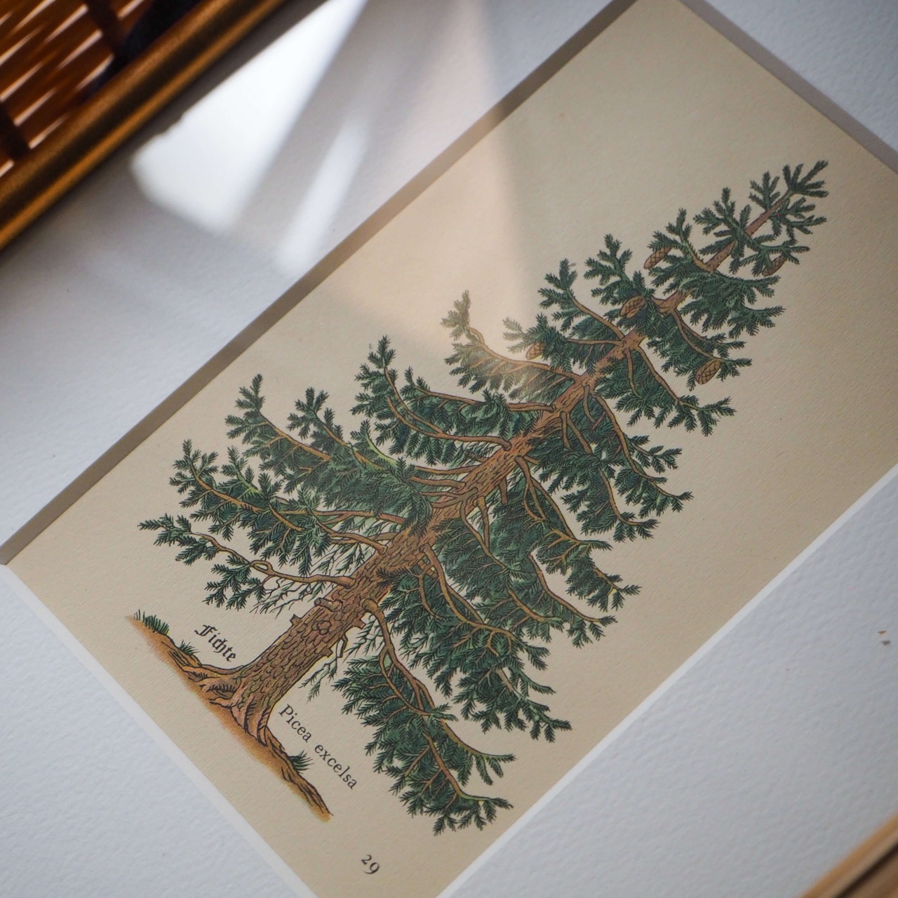 額装アート|インゼル文庫 Das kleine Baumbuch #316 小さな木の図鑑 マット2種類セット フィヒテ ドウイツトウヒ スプルース 図版 植物図鑑 挿絵 ウォールアート アートフレーム fla-8_ins | greenish