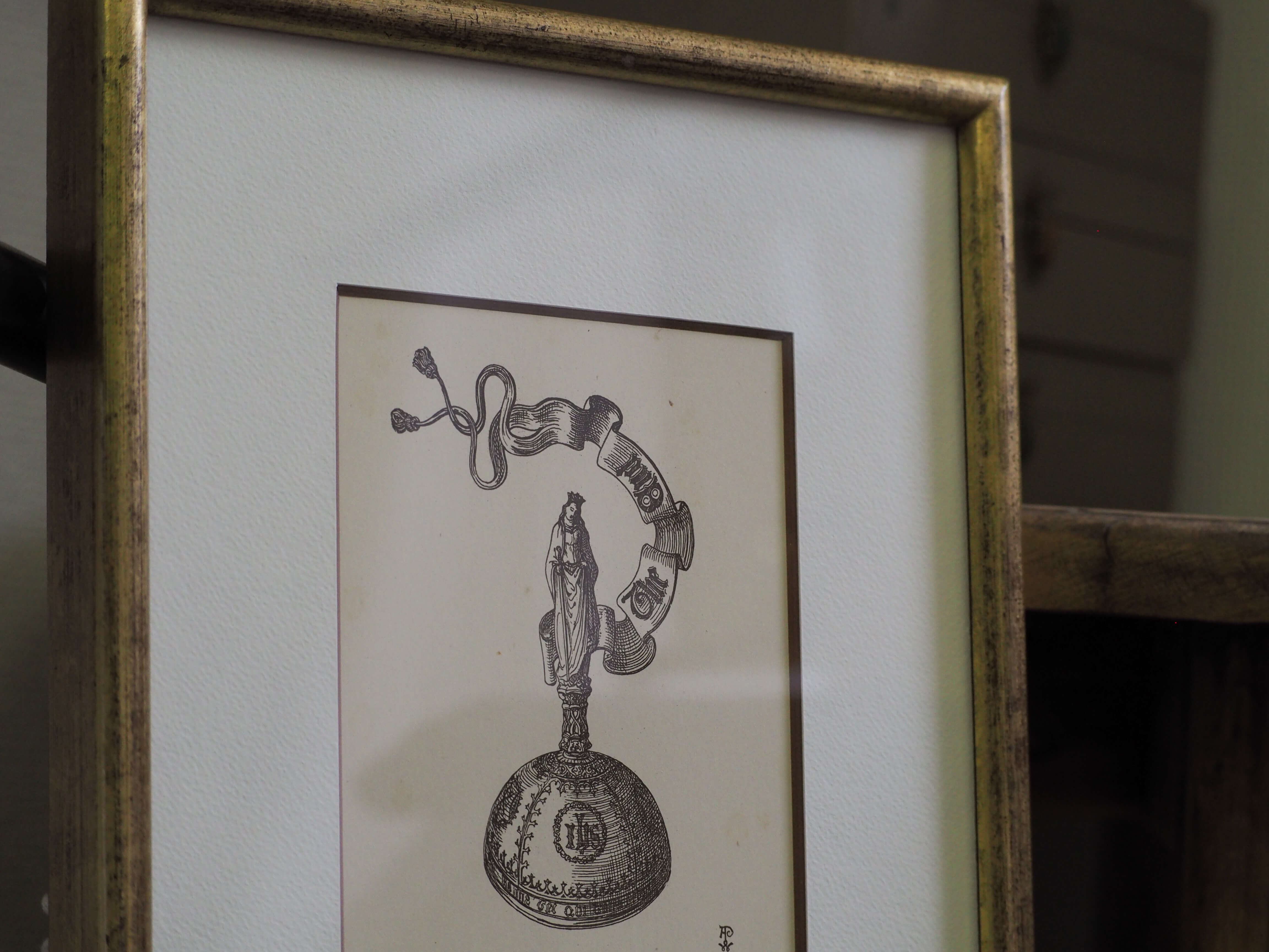 120年以上前のアンティークの美しい図版を、古いゴールドのフレームと薄茶縁のマットで額装しました。とても良い雰囲気でおすすめです^^