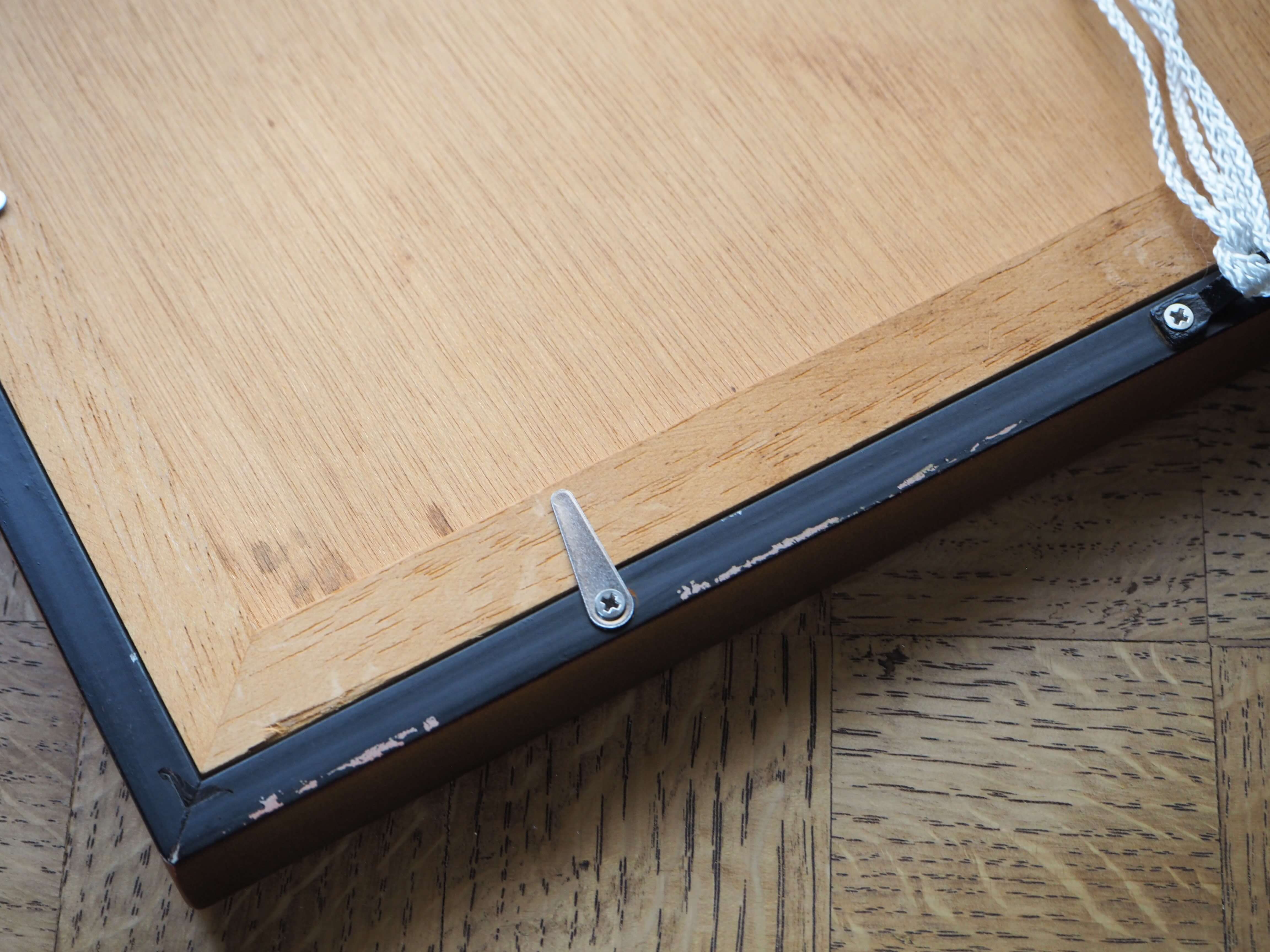 かなり古い紙ものなので、変色や小さなシミ等経年変化がございます。また、フレームも古いものを手入れして使用しております。綺麗に拭き上げておりますが、金具に多少のサビや、木材部分に傷、補修跡等ございます。飾るにあたって何も問題はありませんが、商品画像をよくご覧いただき、そのような点をご理解頂いたうえでご購入下さい。