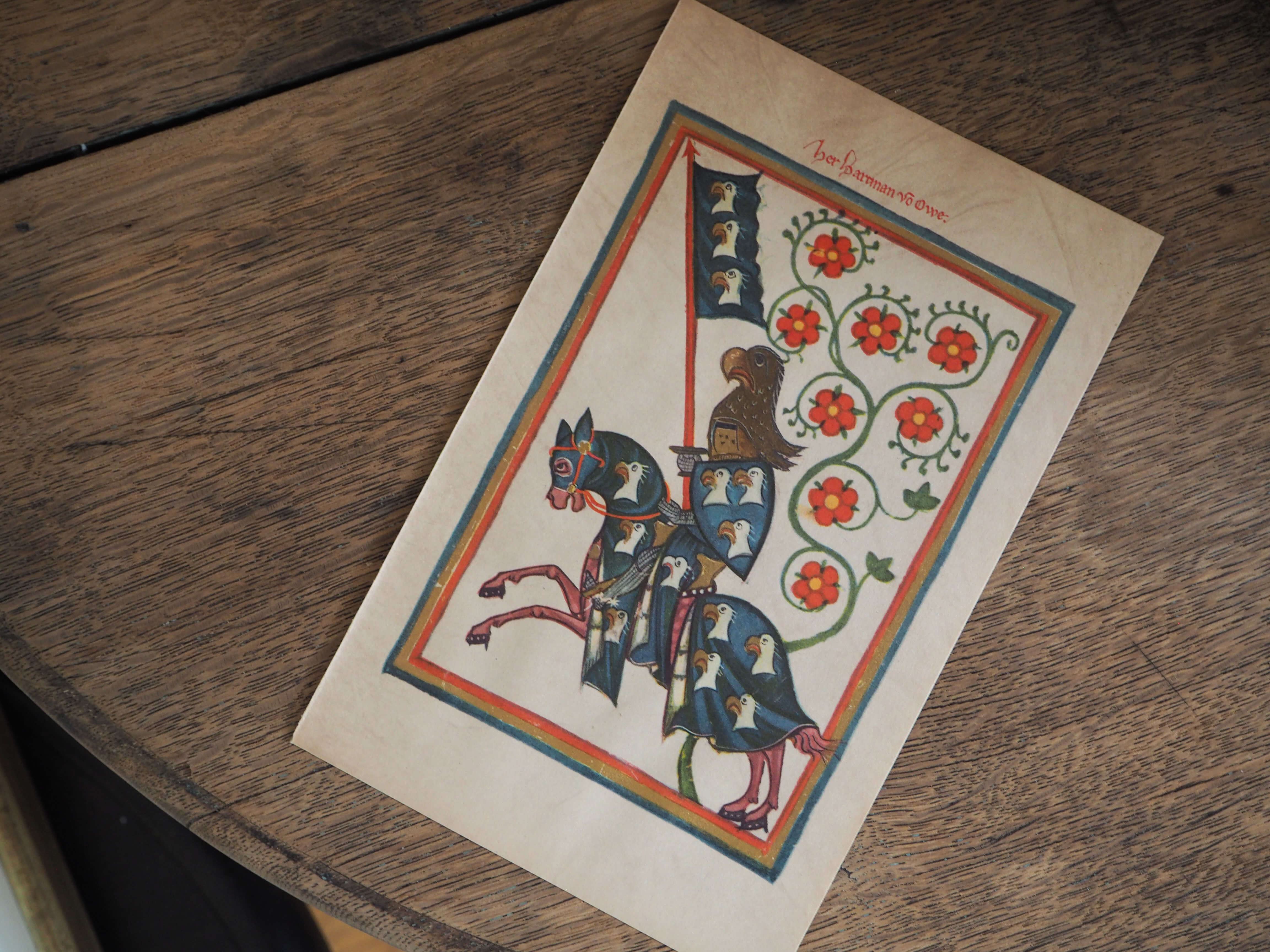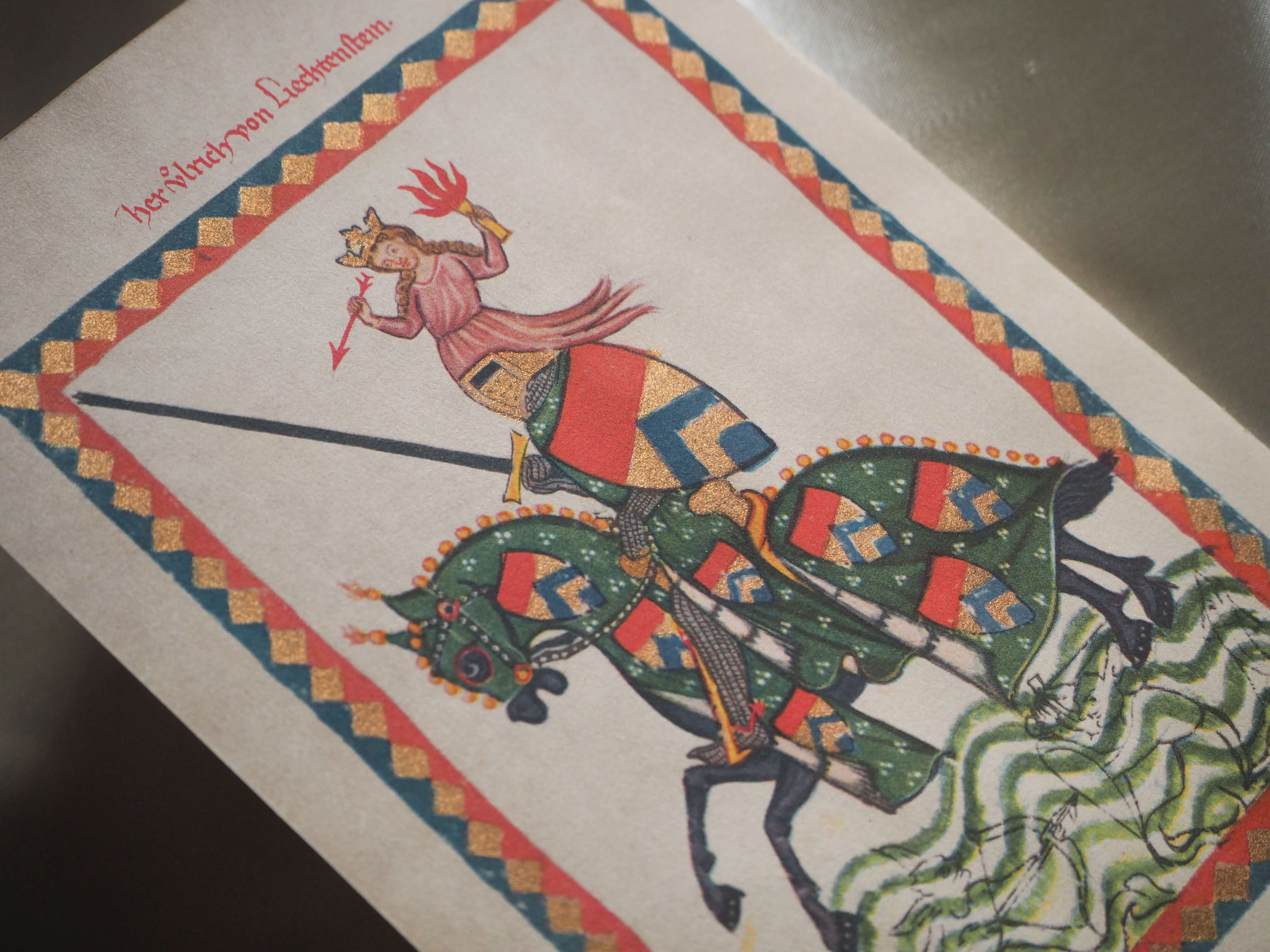 タイトルは、表面は【Herr Hartmann von Aue】、裏面は【Herr Ulrich von Lichtenstein】。どちらも中世ドイツの騎士であり詩人・宮廷文化の象徴的人物(ミンネザンガー)です。