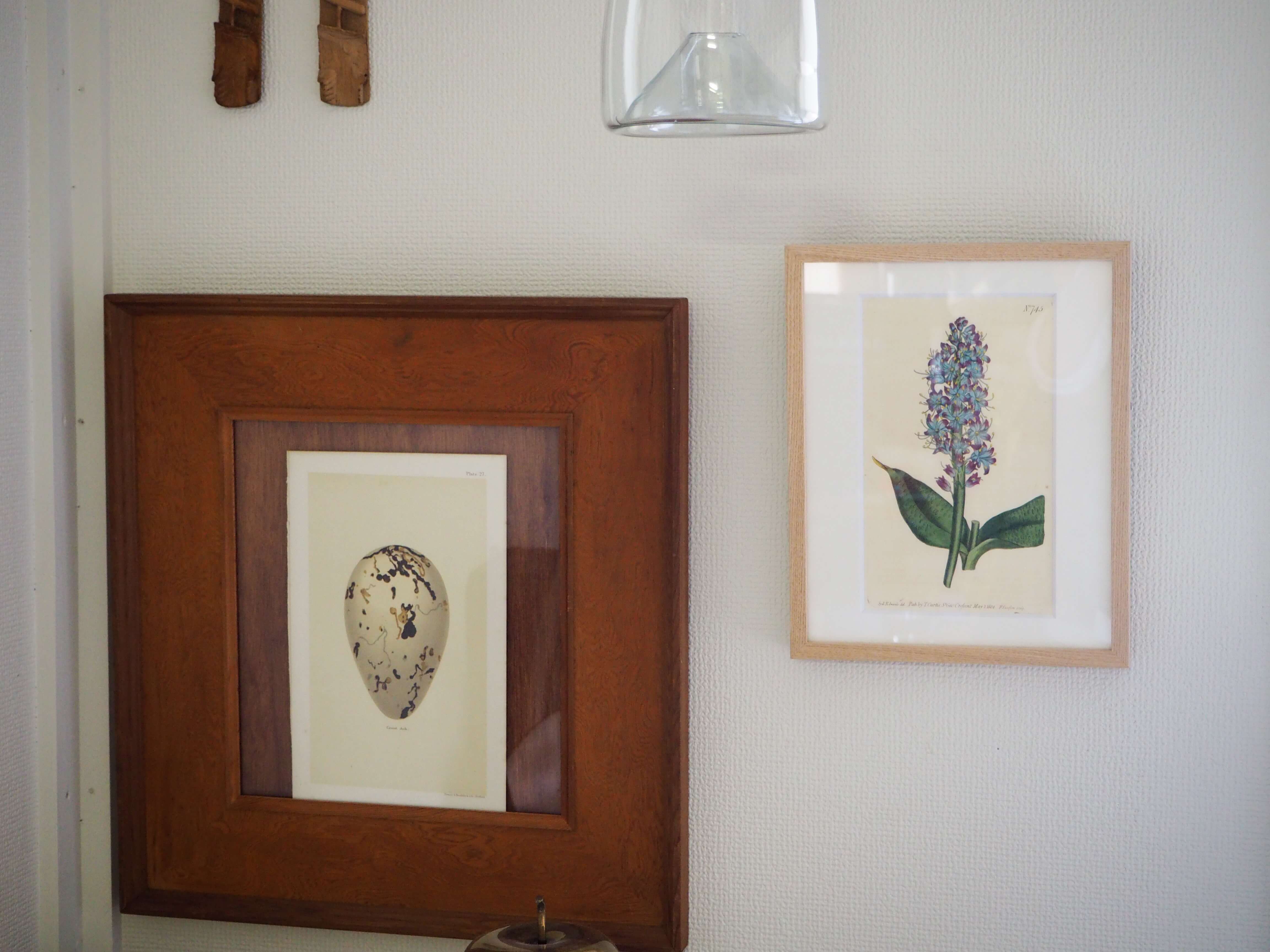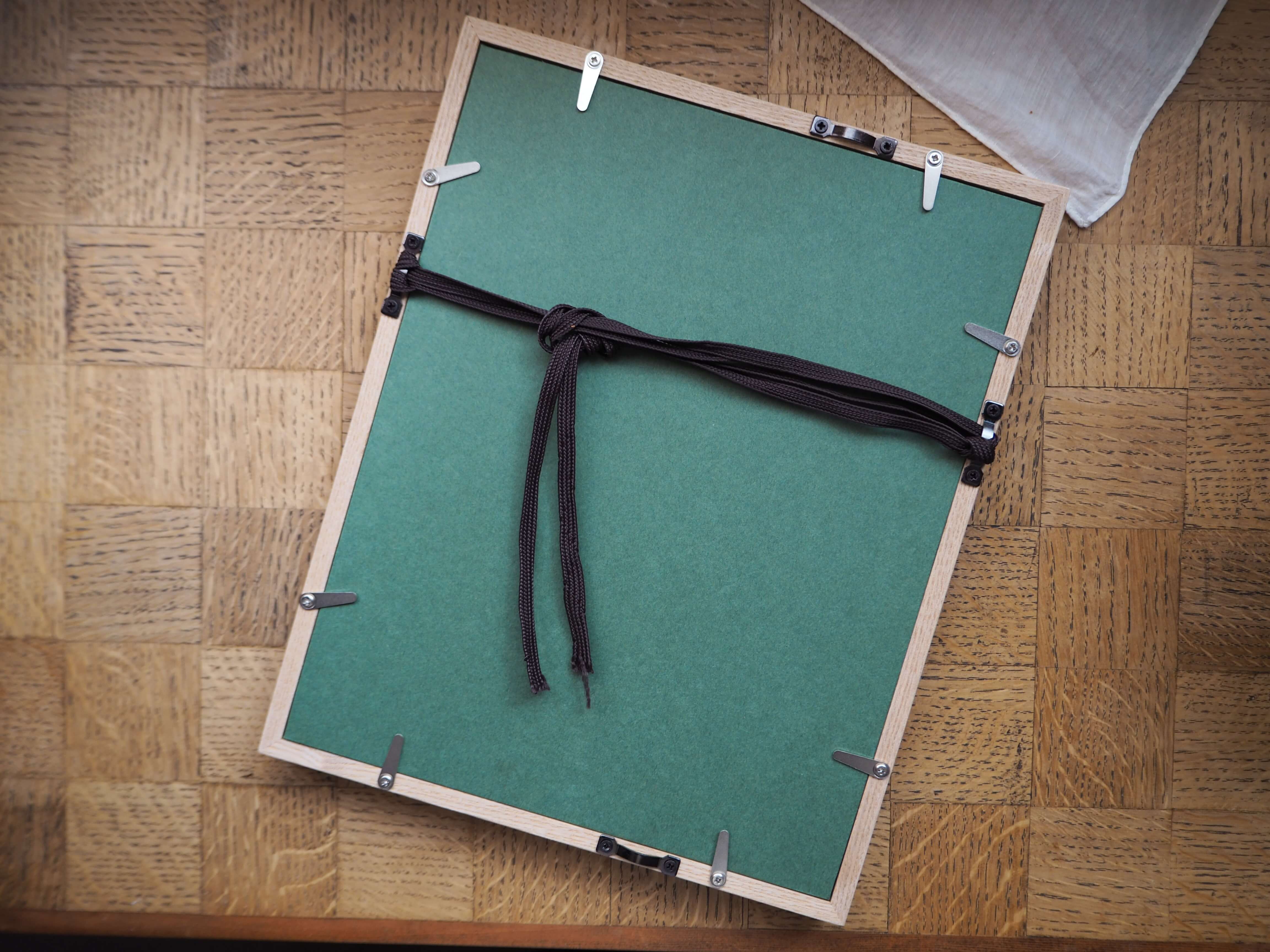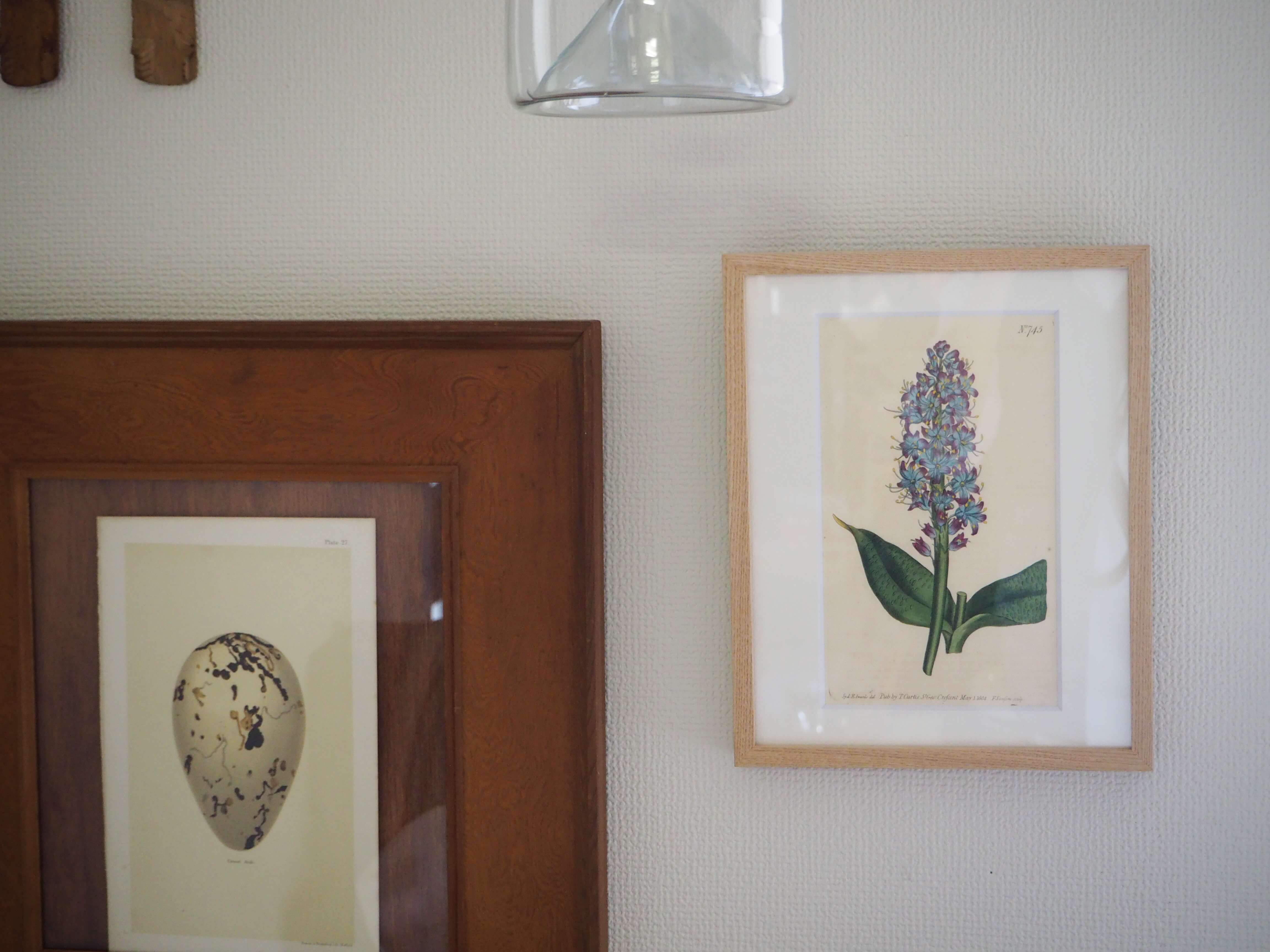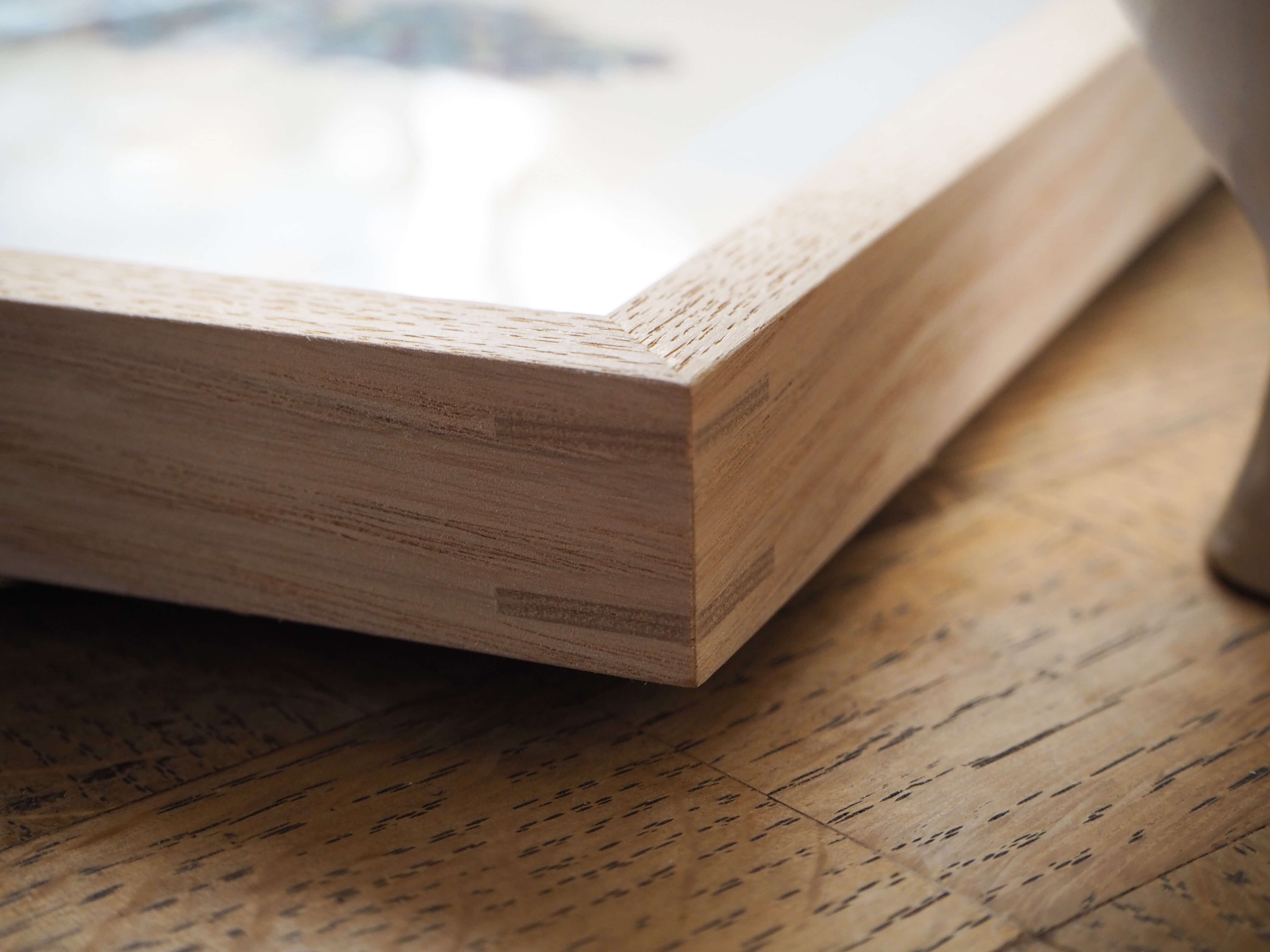 フレームには、無塗装のタモ無垢材を合わせました。均一で美しい木目と自然な質感がこの図譜の雰囲気に調和し、ナチュラルでありながら素朴すぎない、凛とした額装に仕上がっています。