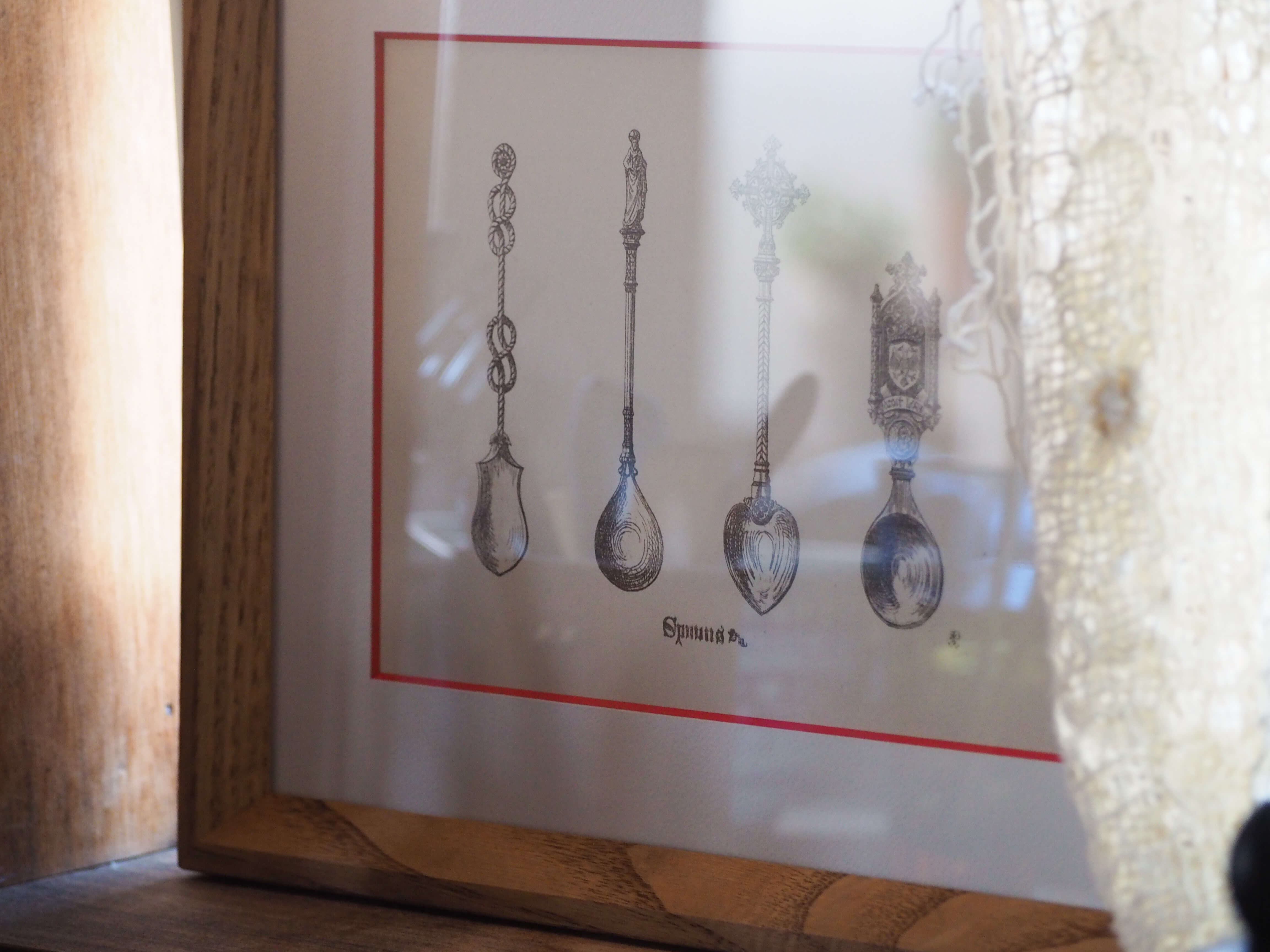 繊細で美しいスプーンがモチーフで、カフェなどの装飾にも良いかもしれません。