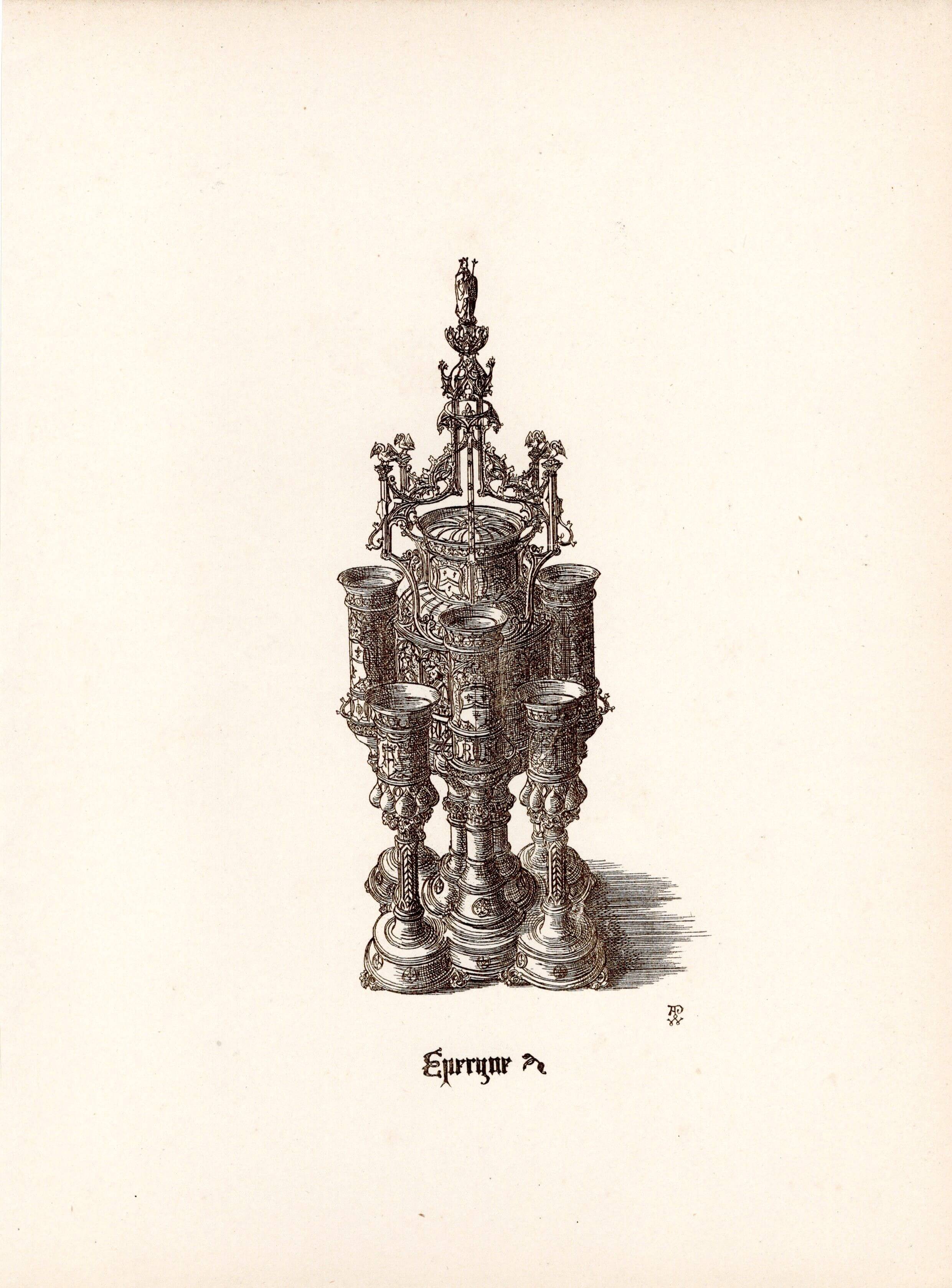 イパーンとは、食卓の中央に置くセンターピースで、飾り皿のようなものです。フランス王朝文化の中で生まれ、イギリスに渡り、ジョージアンからヴィクトリアン時代にかけて華やかなテーブルセッティングの演出に使われました。