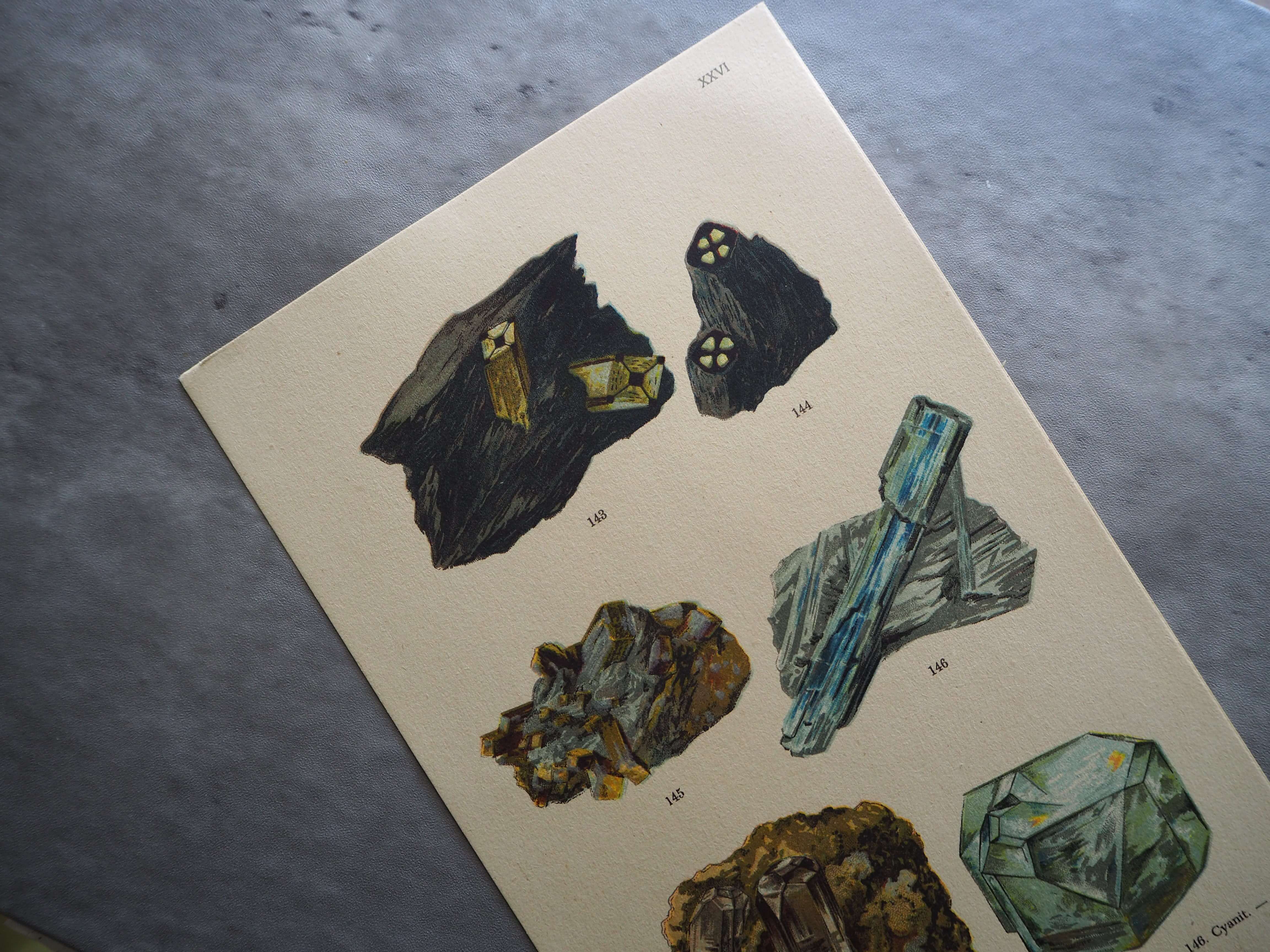 色彩が美しい鉱物の図版。1920年代頃にチェコで出版された古い図鑑からの1葉です。