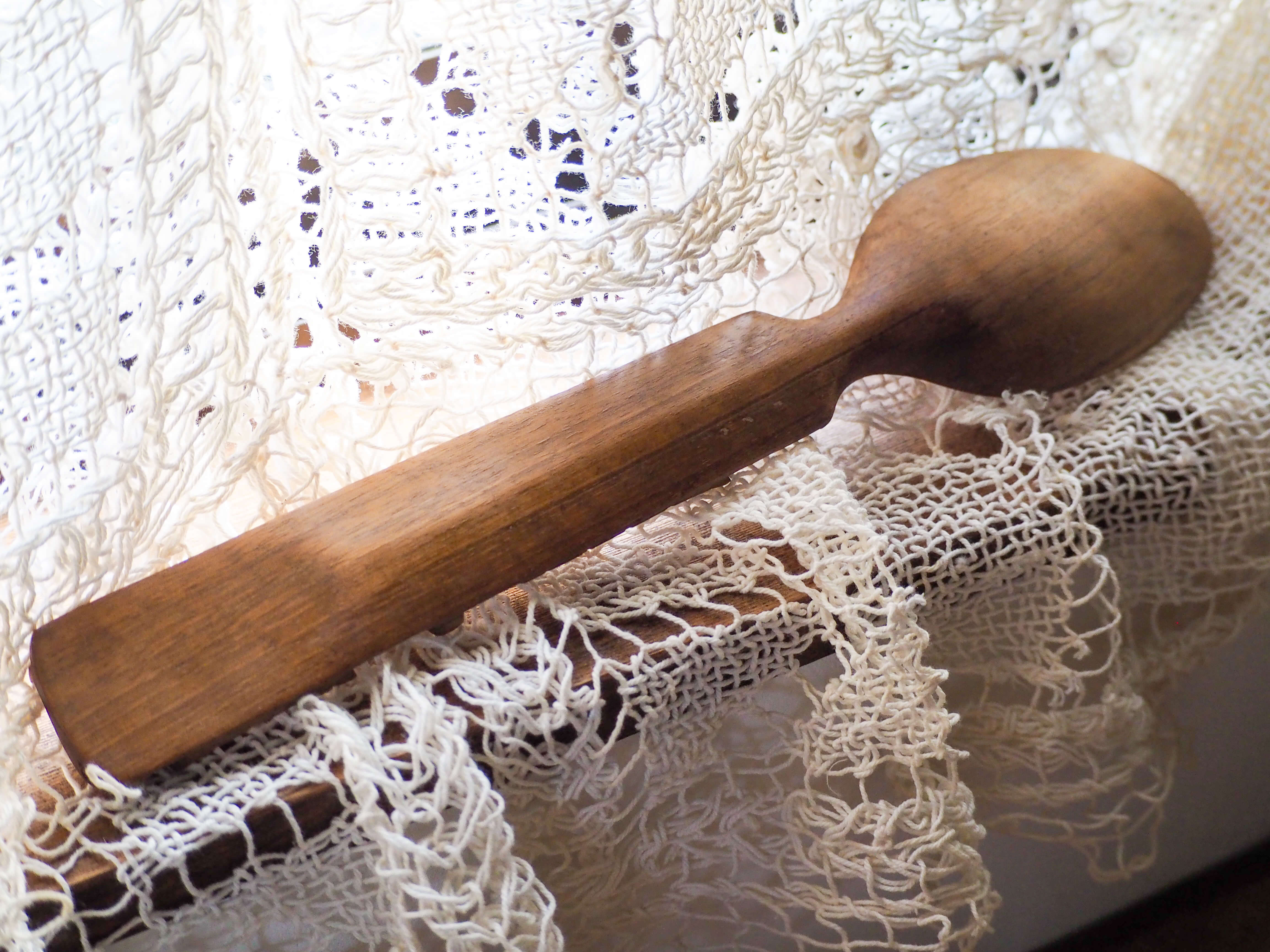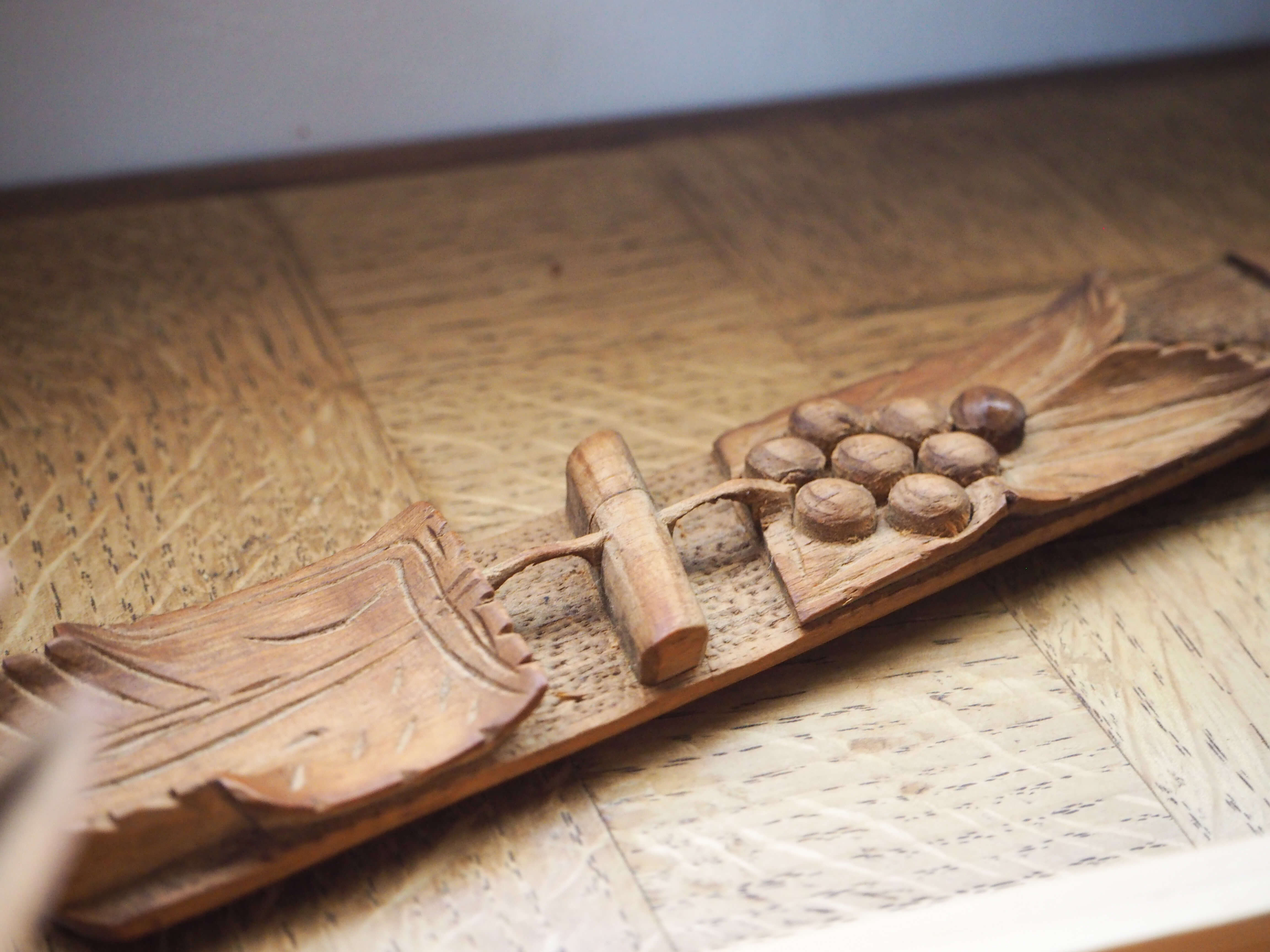 ぶどうの彫刻が美しいファーマーズ風の古い大きなスプーンです。