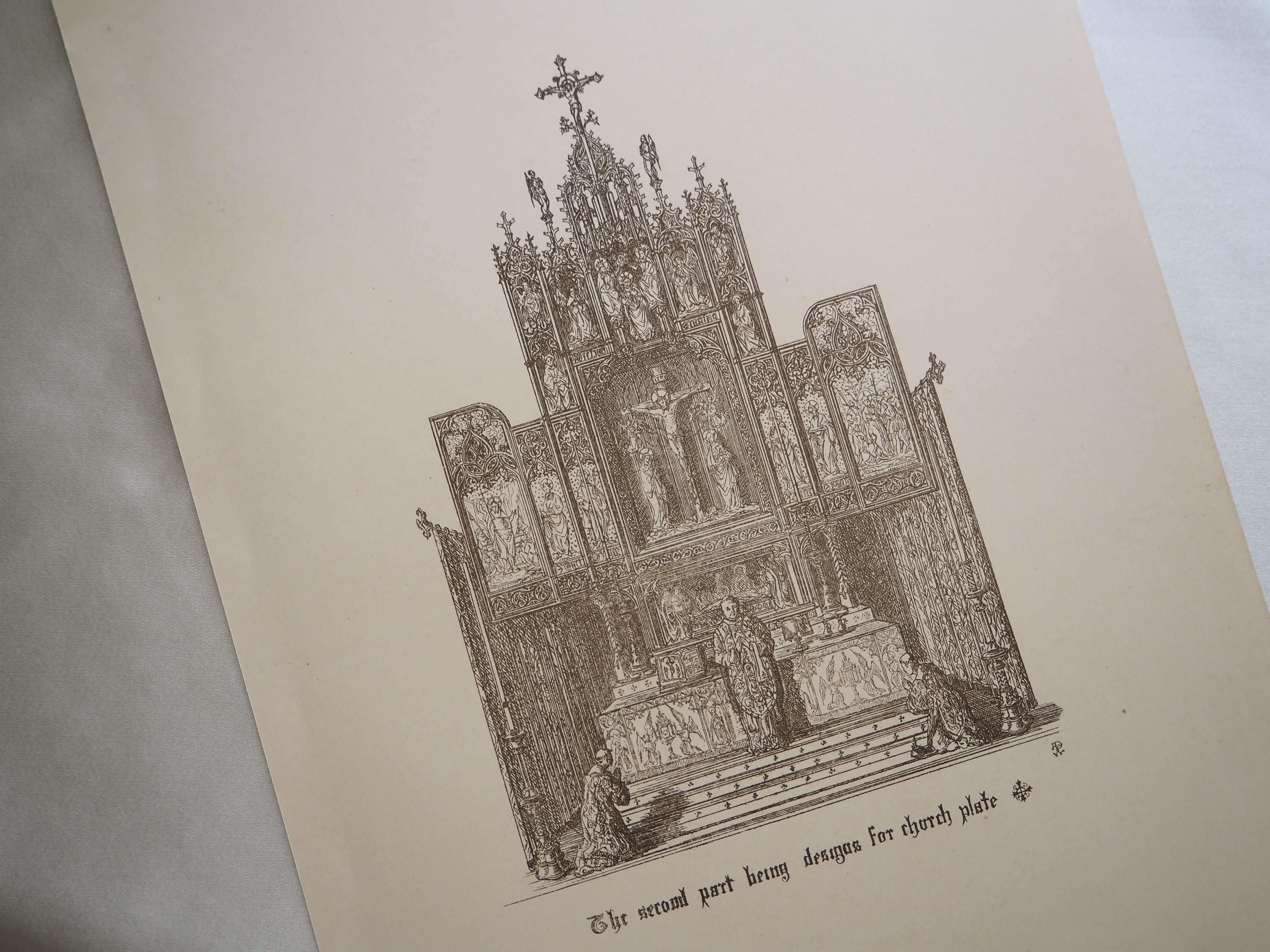 イギリス 15世紀と16世紀の装飾品 Frontispiece for second part-Altar 版画 アンティーク キリスト教 祭壇 wel-16 A.W.Pugin | greenish